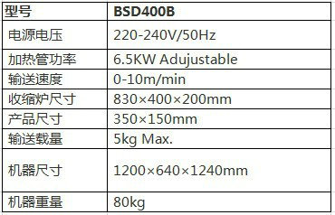 BSD系列熱收縮包裝機(jī)采用石英遠(yuǎn)紅外管加熱,電子無級變速自動調(diào)溫,固態(tài)繼電器控制,穩(wěn)定可靠、低噪音、壽命長。