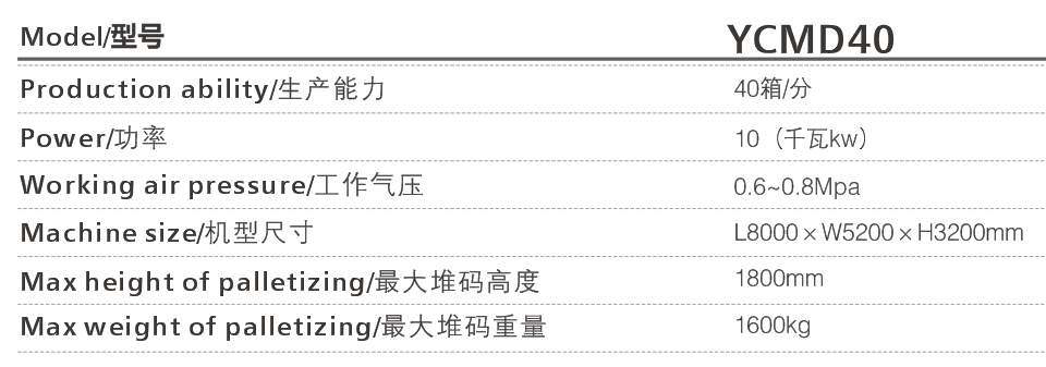 * 表示必填采購(gòu):YCMD40 高床碼垛機(jī)