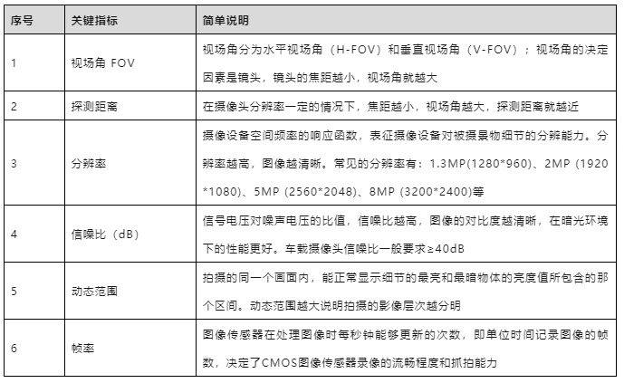 圖表3. 車載攝像頭關鍵參考指標(信息來源:《QCT/T 1128 汽車用攝像頭》、公開資料整理)