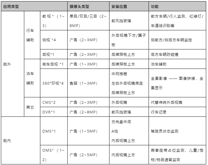 圖表5. 車載攝像頭主要應用場景分析(信息來源:公開資料整理)