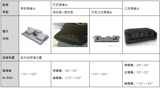 圖表6. 前視攝像頭主要類型
