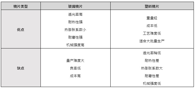 玻璃鏡片具有透光率高、耐熱和耐磨性強(qiáng)等優(yōu)點,但成本較高,且量產(chǎn)難度大。
