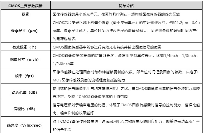 圖表15. CMOS圖像傳感器核心技術(shù)指標(biāo)