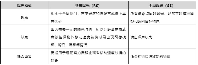 卷簾曝光(RS):在曝光開始時,感光組件會逐行或逐列進(jìn)行掃描并曝光,直至感光組件上所有像素點都完成曝光為止,但是每行或每列之間的曝光存在一定的時間差。