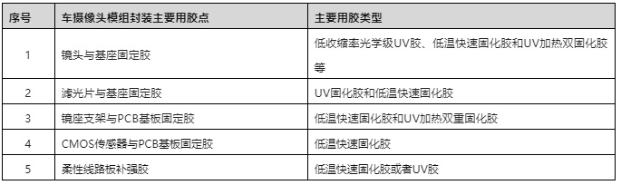 圖表20. 車載攝像頭模組封裝主要用膠點及用膠類型