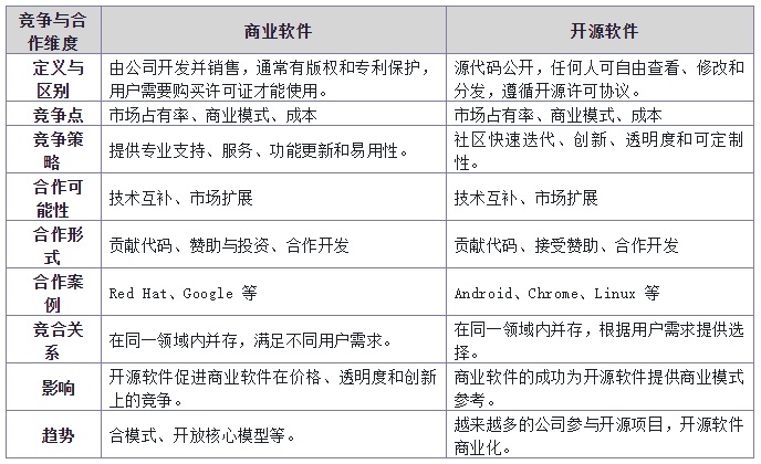 商業(yè)軟件與開源軟件之間的競爭與合作是一個復(fù)雜且多維度的現(xiàn)象,它們在軟件行業(yè)中扮演著不同的角色,并且在某些情況下相互對立,在其他情況下則相互促進。