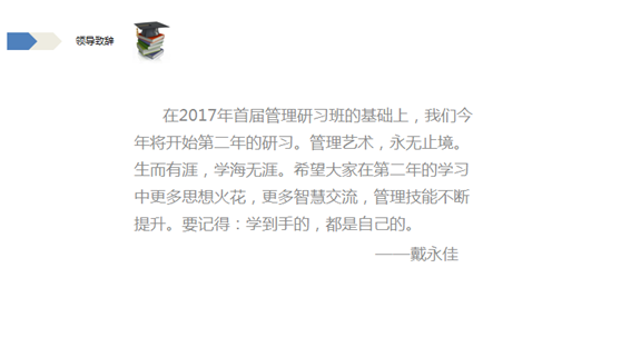 戴總對(duì)2018年的研習(xí)班發(fā)來(lái)了祝賀詞: