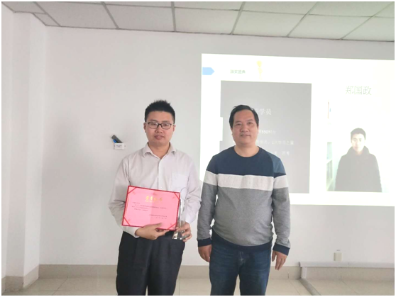 (從左向右)“年度優(yōu)秀學(xué)員”鄭國(guó)政、頒獎(jiǎng)人劉正山