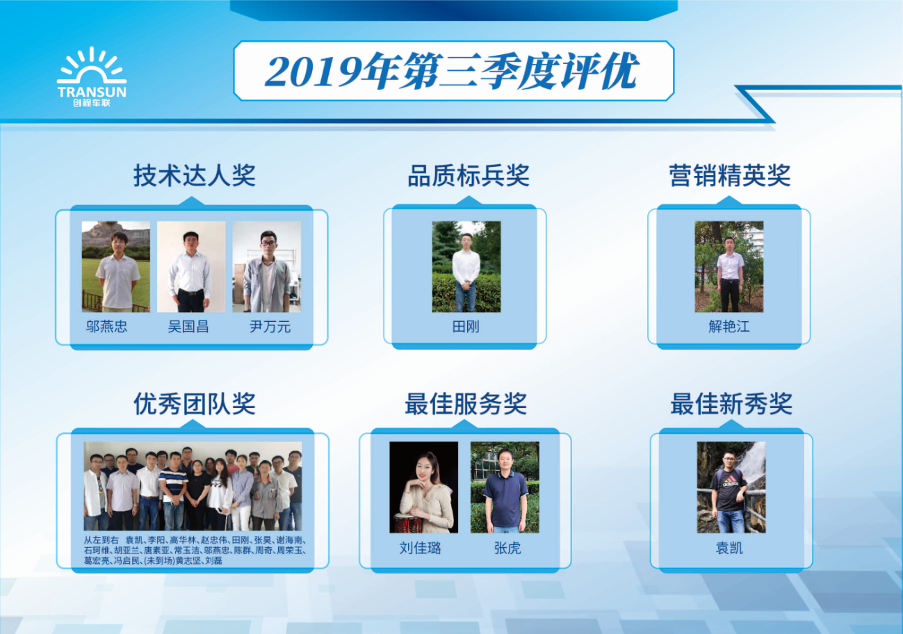 優(yōu)秀團(tuán)隊(duì)蘇公交項(xiàng)目團(tuán)隊(duì),技術(shù)達(dá)人鄔燕忠、吳國(guó)昌、尹萬(wàn)元,最佳服務(wù)劉佳璐,張虎,品質(zhì)標(biāo)兵田剛,最佳新秀袁凱,營(yíng)銷精英解艷江,他們?cè)谶@一季度中團(tuán)結(jié)協(xié)作、積極創(chuàng)新、勤勤懇懇,為公司發(fā)展做出貢獻(xiàn),下面讓我們一睹他們的風(fēng)采。