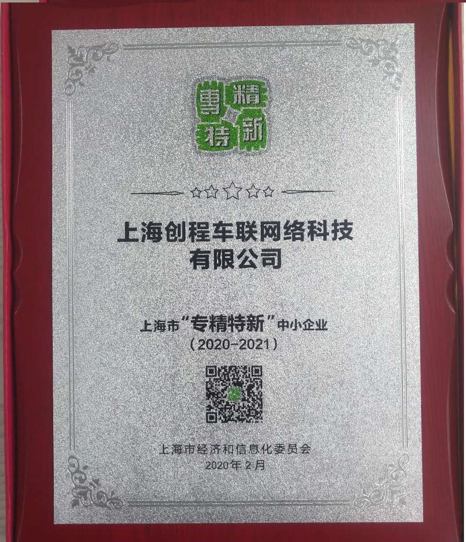 今年,經上海市經濟信息化委審核,上海創(chuàng)程車聯網絡科技有限公司(以下簡稱“上海創(chuàng)程”)成功榮獲2019年度上海市“專精特新”中小企業(yè)資格。9月份,我司已成功領取到該獎牌。