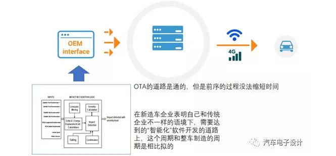 從這個意義上來看,這打破了原來既有的整車開閥制度,在G6到G5的開發(fā)階段很難有足夠的時間來軟件做完,使得G4的試驗認證的工作只能覆蓋基礎(chǔ)的這部分。事實上,越來越短的開發(fā)周期和越來越多的軟件開發(fā)工作,確實成了一組矛盾。這也是OTA如果實現(xiàn)在C端的更新,對于車企的很大的意義,它能拾遺補漏,幫助車企把問題進行修正,繞過了4S店的環(huán)節(jié)。