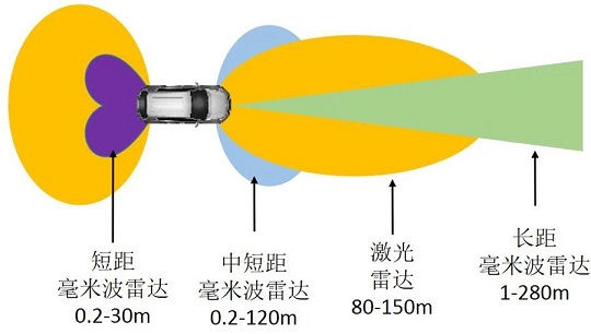 雷達(dá)能夠主動(dòng)探測(cè)周邊環(huán)境,比視覺(jué)傳感器受外界環(huán)境影響更小,是自動(dòng)駕駛汽車的重要傳感器之一。雷達(dá)通過(guò)向目標(biāo)發(fā)射電磁波并接收回波,從而獲取目標(biāo)距離、方位、距離變化率等數(shù)據(jù)。根據(jù)電磁波波段,雷達(dá)可細(xì)分為激光雷達(dá)、毫米波雷達(dá)和超聲波雷達(dá)等3類。
